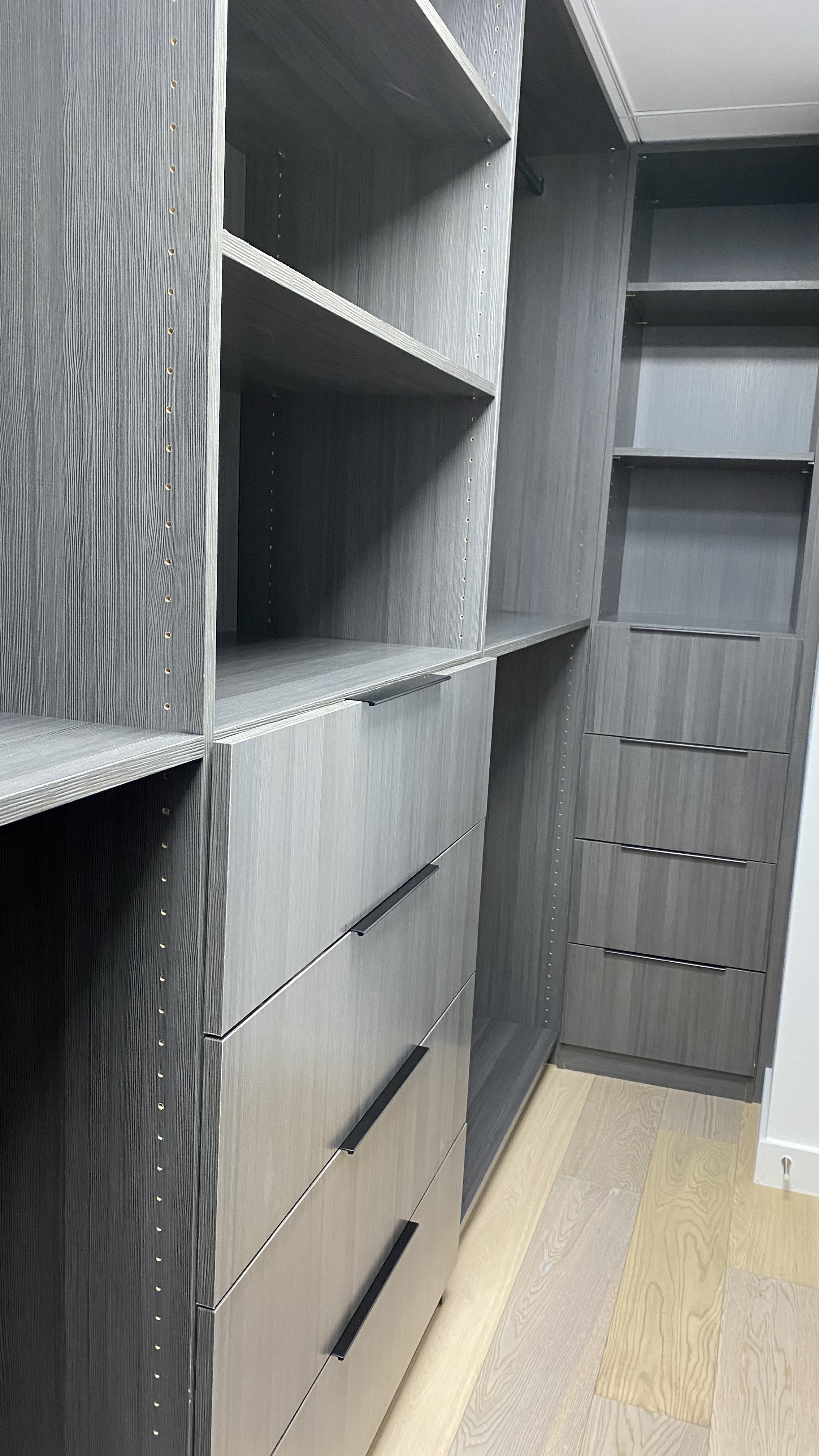 Wide-plank European white oak flooring anchors the entire residence, adding warmth and architectural continuity from entry to bedroom. The natural grain softens the modern palette while amplifying light throughout the space.