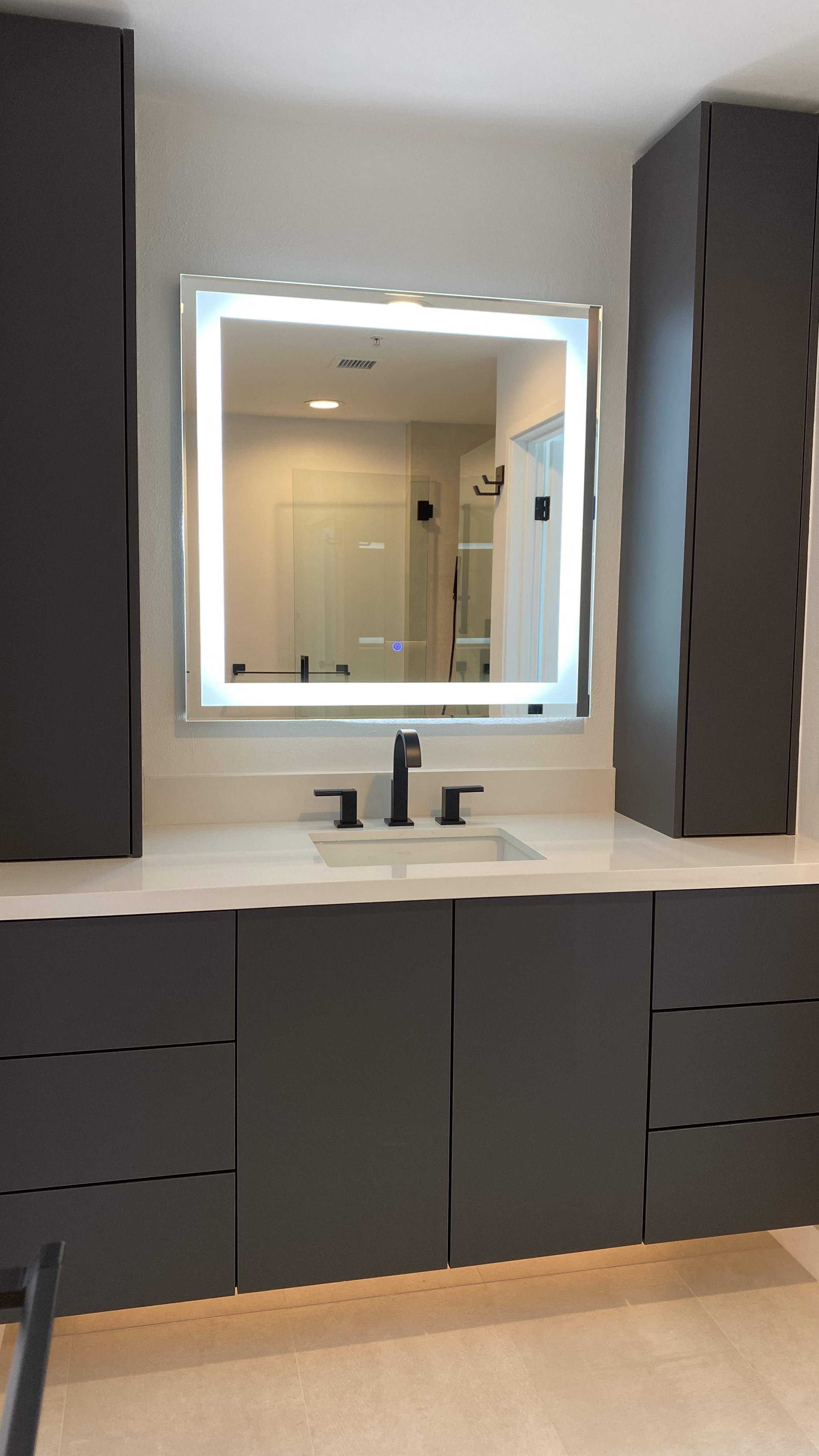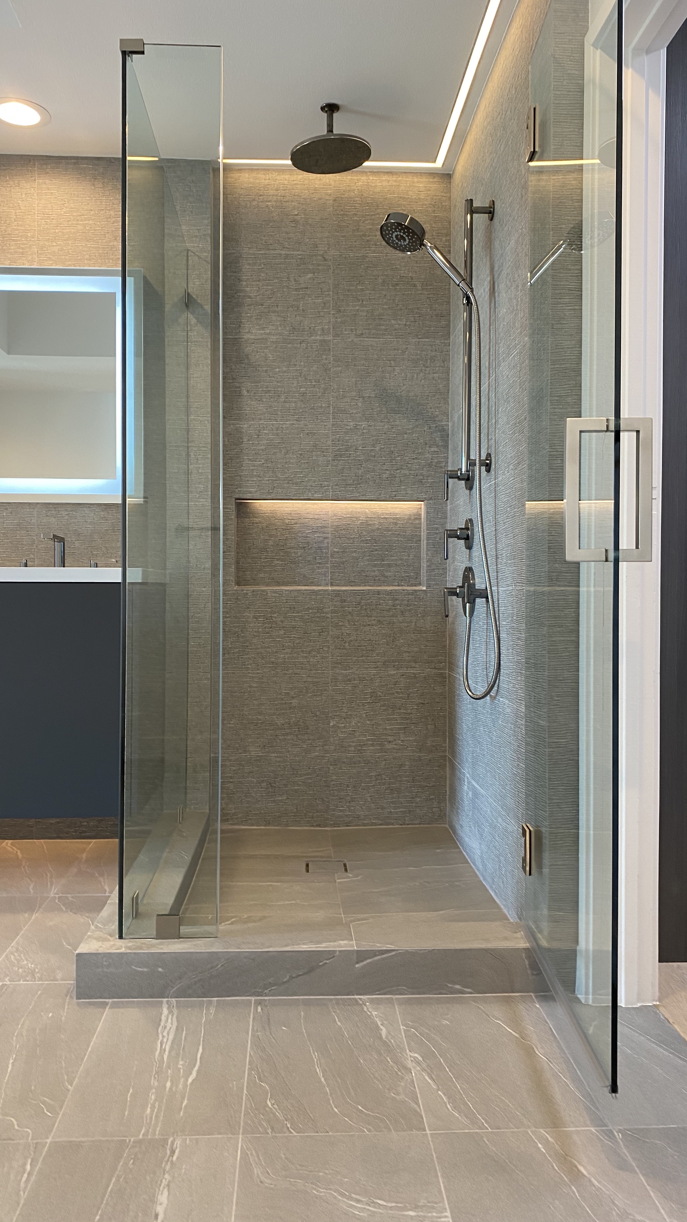 Both bathrooms were fully reconstructed with Porcelanosa tile installations and decorative detailing that elevate the everyday experience. From carefully aligned tile patterns to precision waterproofing and custom vanities, no element was overlooked. Each surface was selected and installed to reflect both durability and design sophistication.