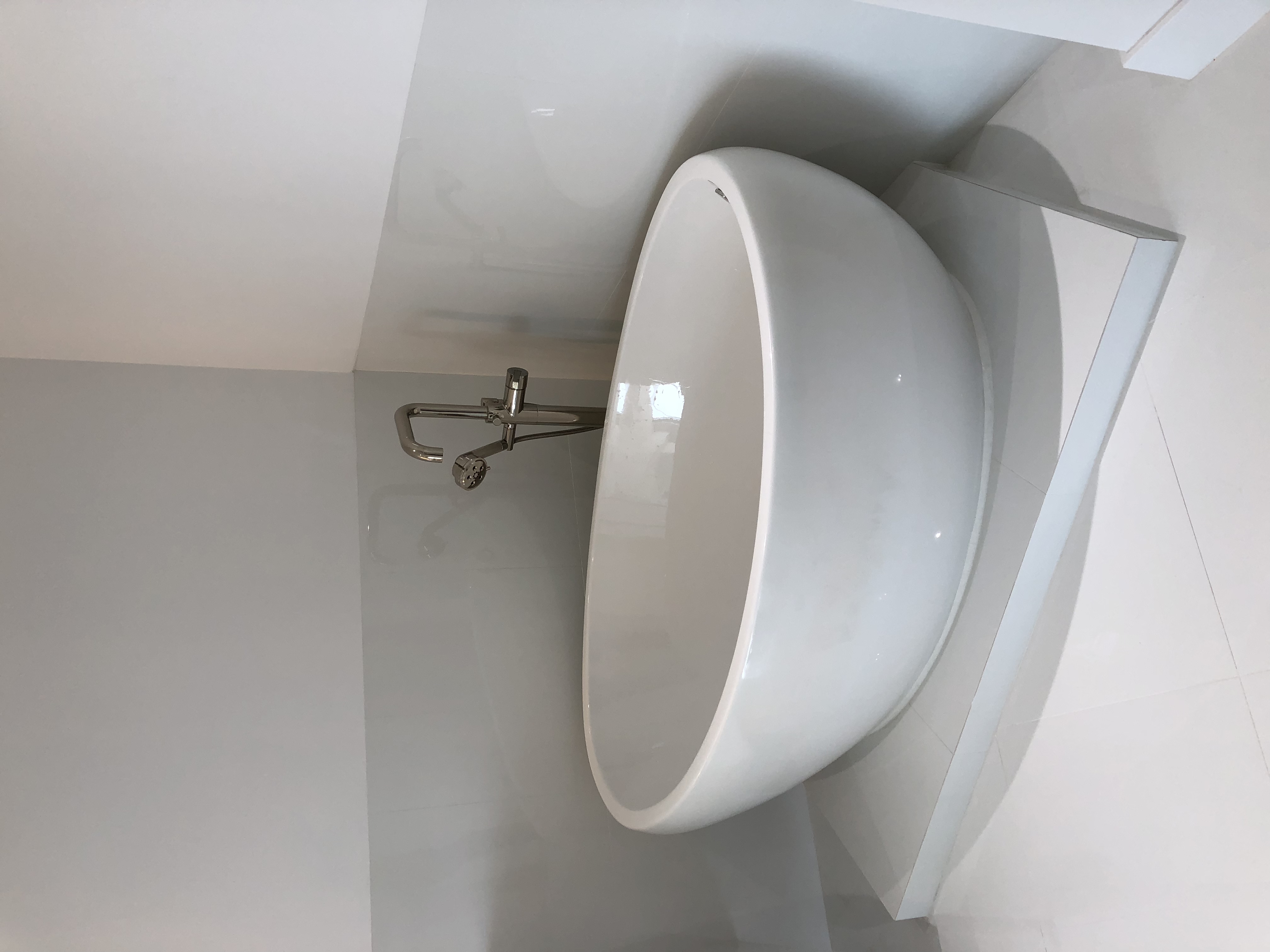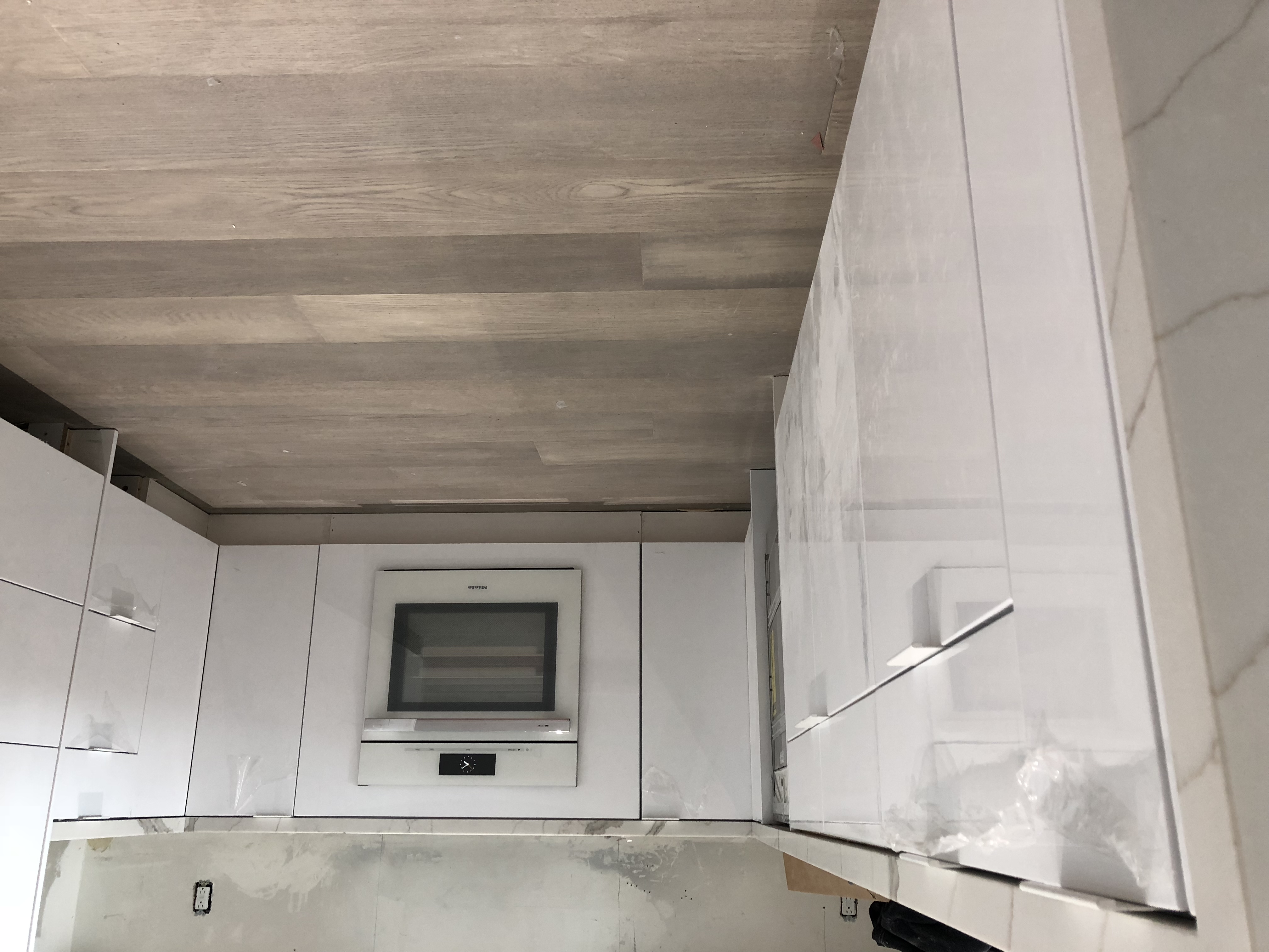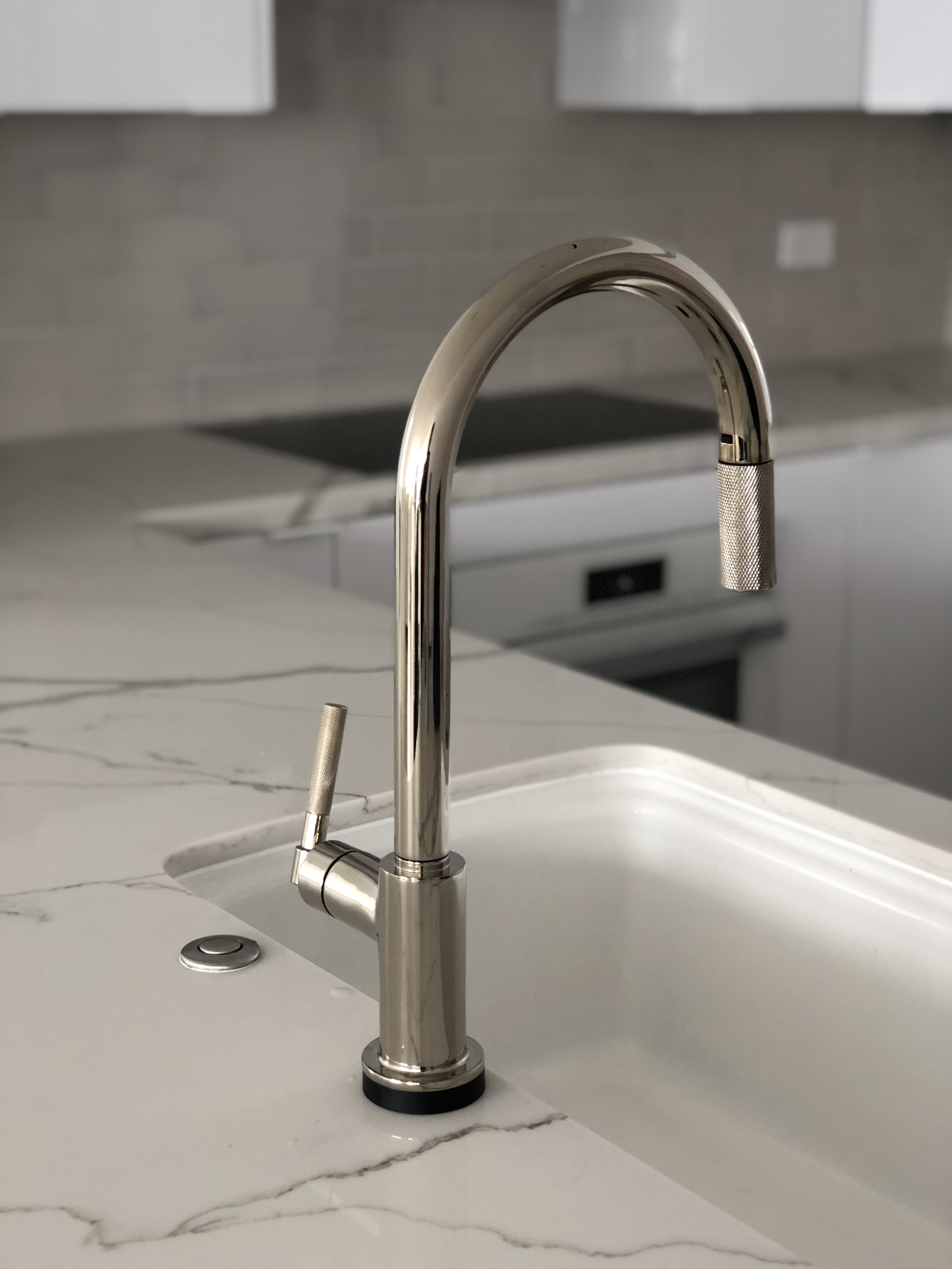 The kitchen was rebuilt with high-gloss white lacquer cabinetry, fabricated for seamless integration and clean geometry. Neutral quartz countertops were selected for their quiet movement and durability, creating a soft contrast against the reflective millwork. Fully integrated Miele appliances maintain the uninterrupted lines of the cabinetry, reinforcing the modern aesthetic without visual clutter.