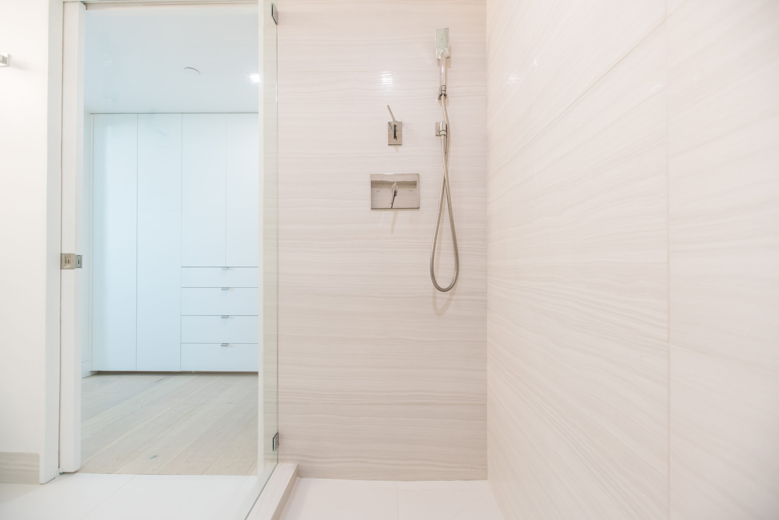 Gray-toned European oak flooring runs throughout the residence, grounding the space with warmth and subtle contrast against the white architecture. All three bathrooms were finished in marble, each designed with a cohesive yet distinctive layout, elevated by carefully selected designer fixtures and finishes.
