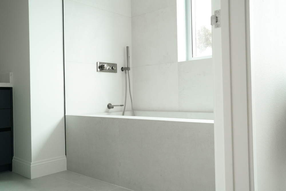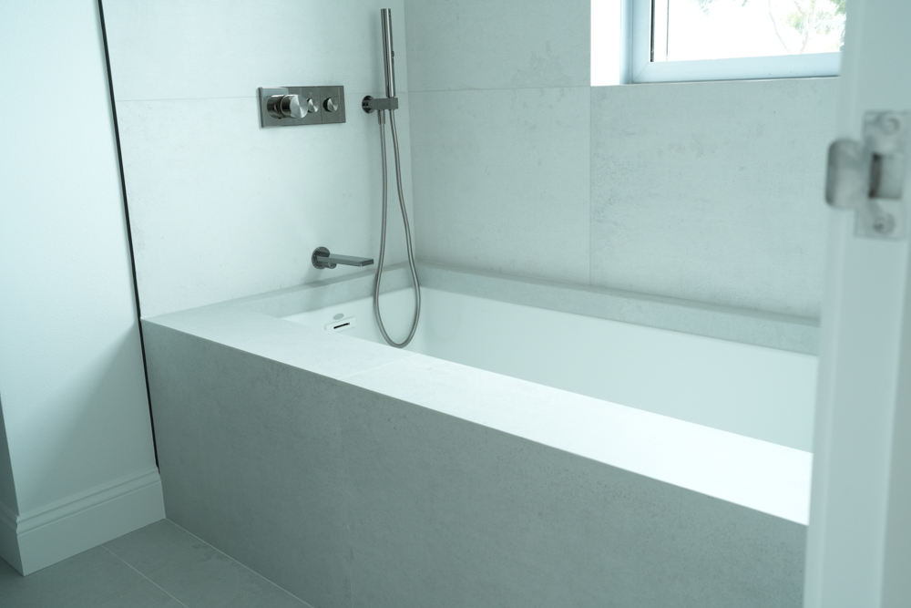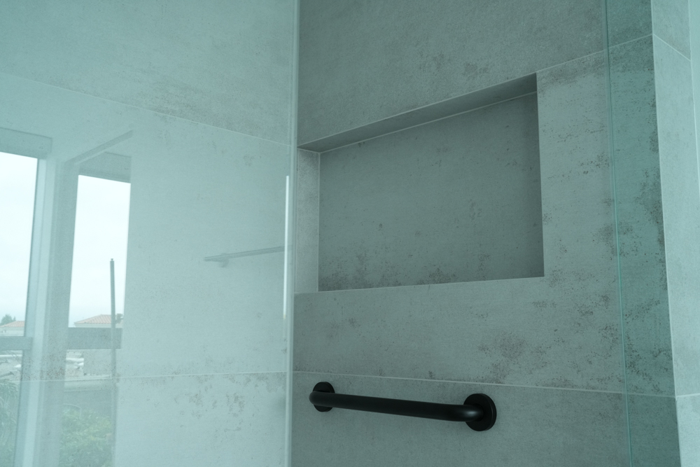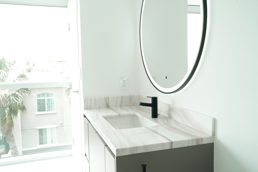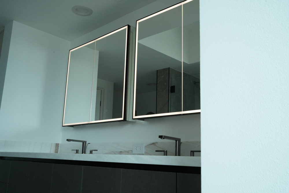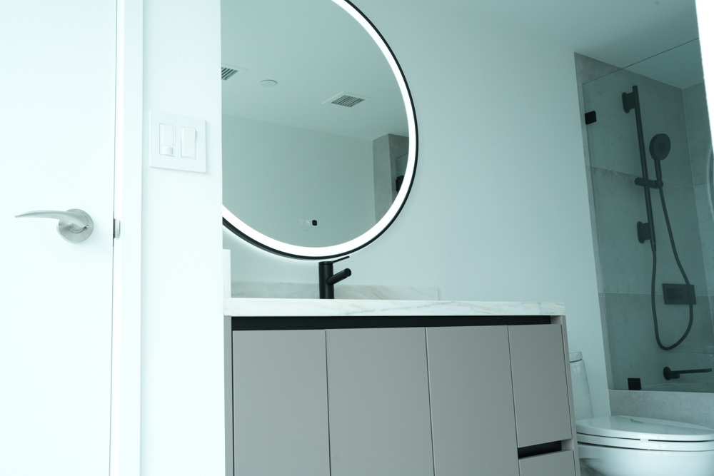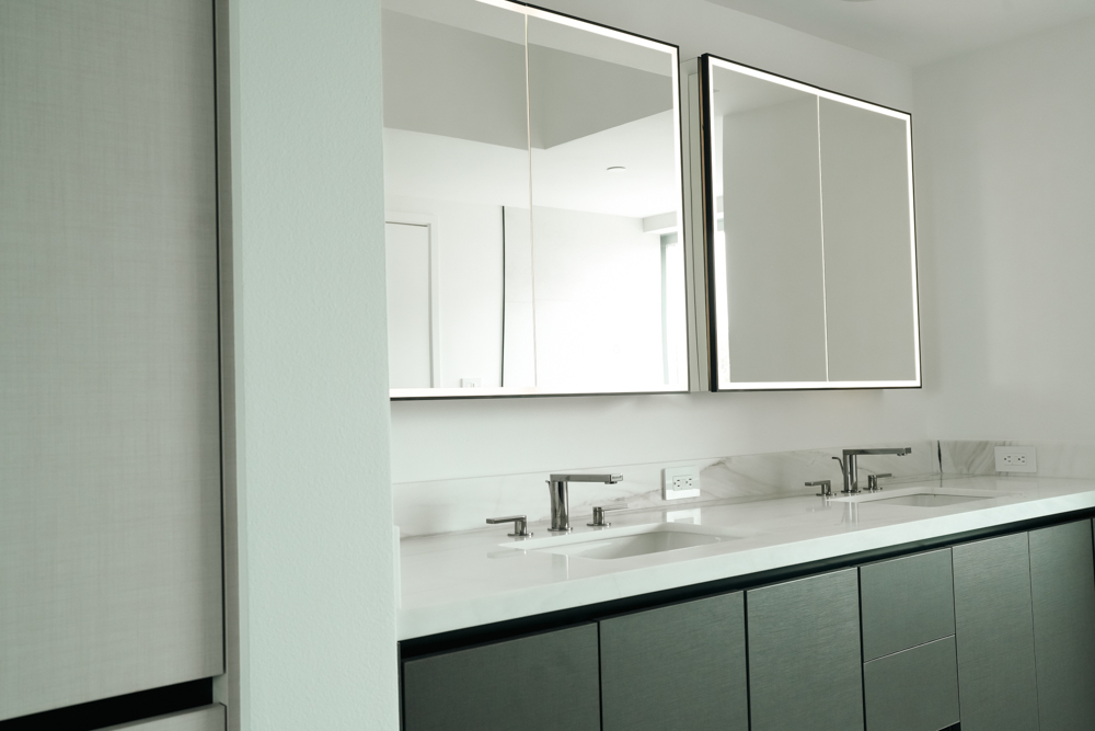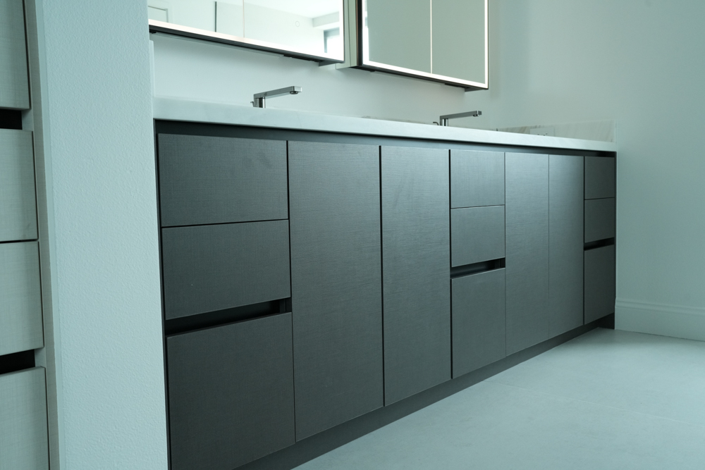 Bathrooms were finished with premium Porcelanosa tile imported from Spain, paired with custom millwork and modern fixtures for a spa-like experience. Throughout the home, bespoke entertainment and storage cabinetry was designed and fabricated to integrate seamlessly into the architecture, maximizing storage while maintaining a minimal aesthetic. The result is a luxury Marina del Rey penthouse renovation that balances modern design, high-end materials, and meticulous craftsmanship—tailored for elevated coastal living.