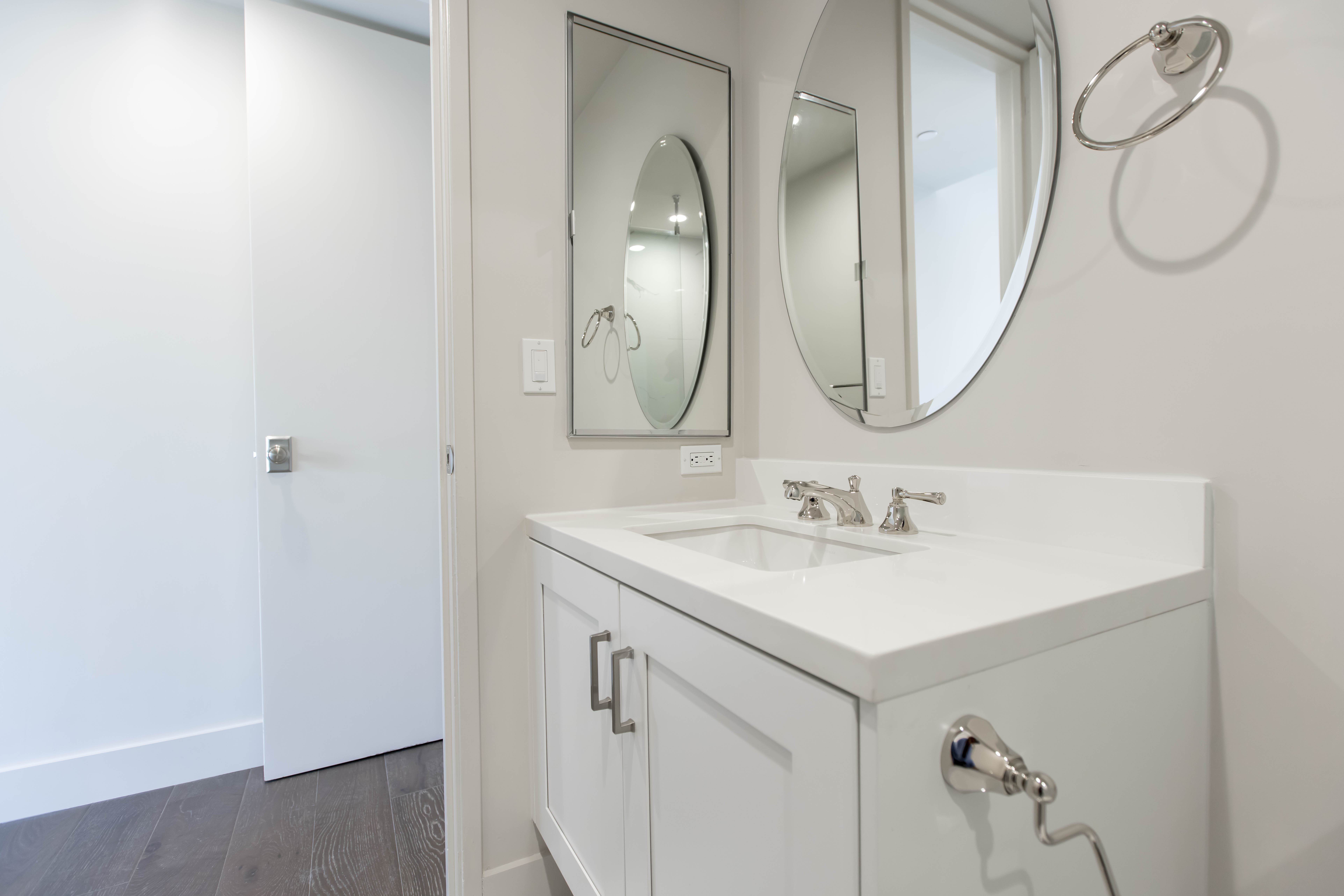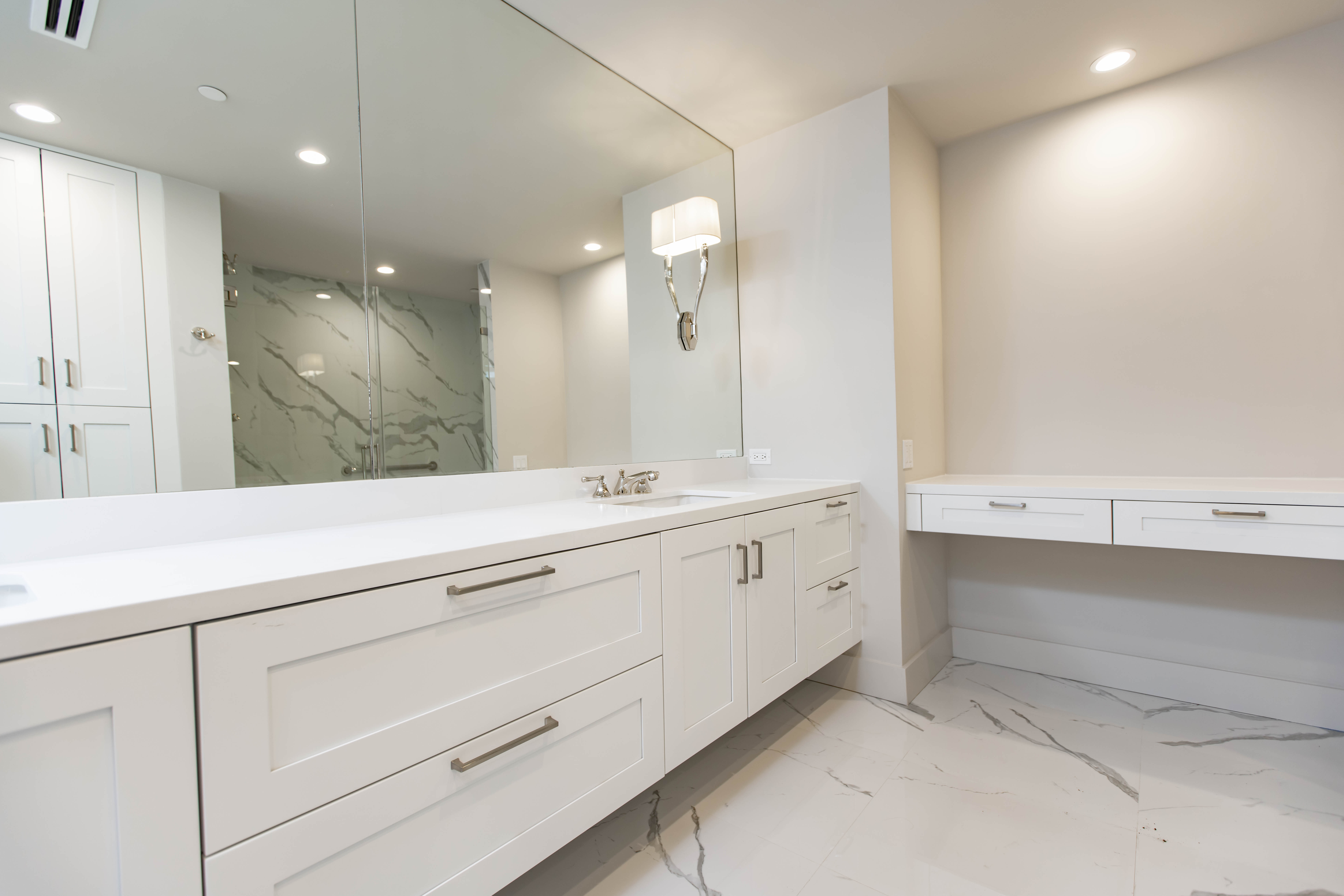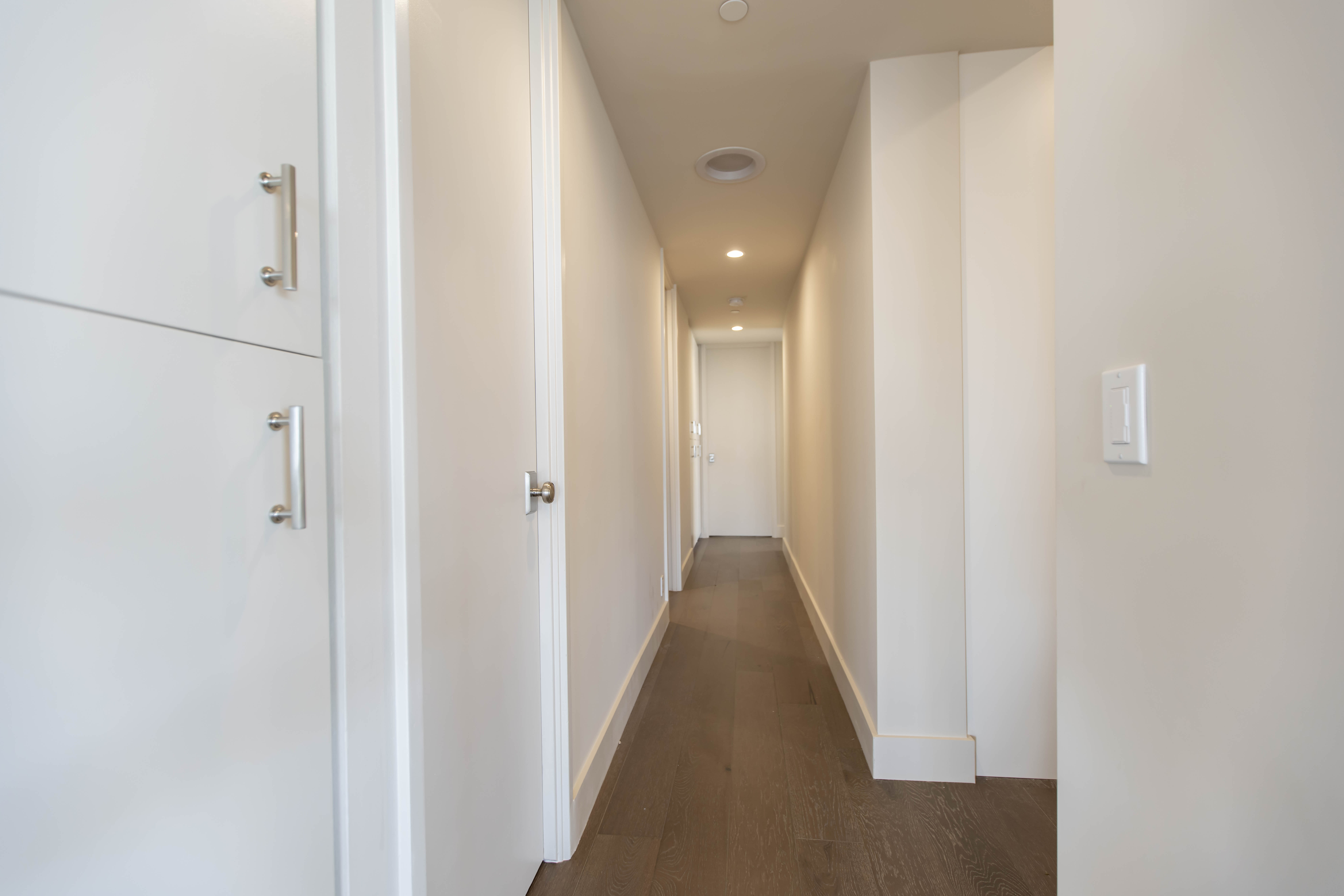This Wilshire Corridor high-rise renovation reimagines a once compartmentalized condominium into a luminous, open-concept residence defined by proportion, material contrast, and technical precision. Constrained by fixed plumbing stacks, electrical risers, and structural shear walls typical of Los Angeles high-rise construction, the transformation required strategic engineering rather than simple demolition. Select non-load-bearing walls were removed, ceilings were thoughtfully raised where allowable, and custom soffits were redesigned to conceal rerouted mechanical systems — allowing the space to feel significantly larger without compromising the building’s infrastructure.